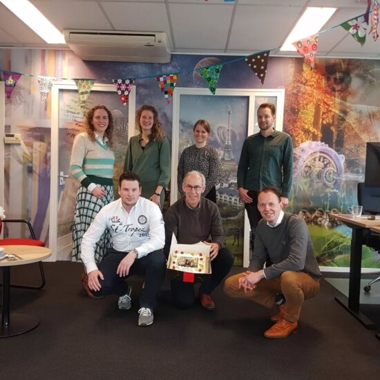 F E E S T Vandaag zijn we officieel begonnen in ons nieuwe kantoor! Daar hoort natuurlijk taart bij. Wat fijn om in zo’n mooie ruimte onderwijs te maken. Dat verhoogt het werkplezier! Niet alleen een nieuw kantoor maar ook twee nieuwe collega’s. Daar hoort ook een nieuwe teamfoto bij.